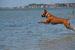 …. und ganz ridgeback-untypisch ein Wasserhund – aber das hat er von Pappa Dayo!